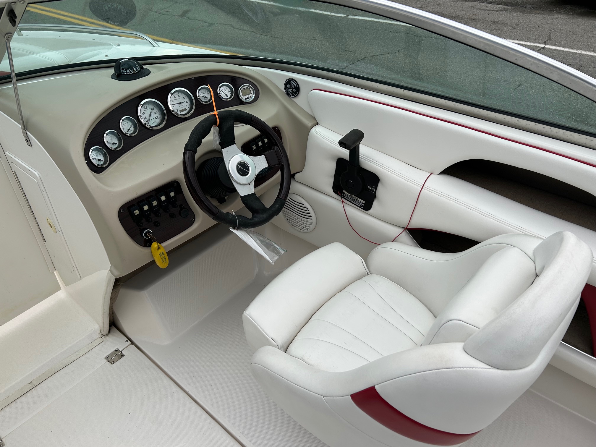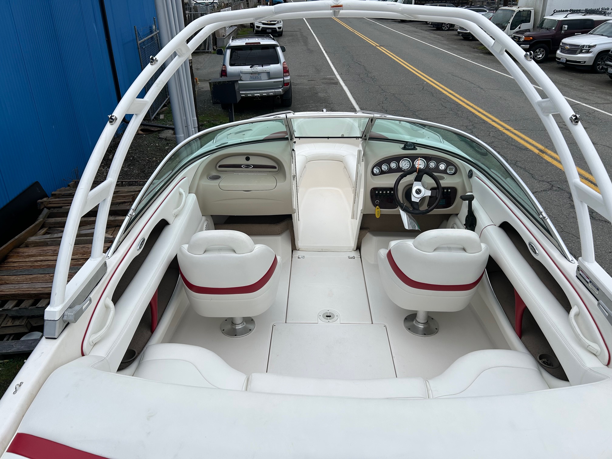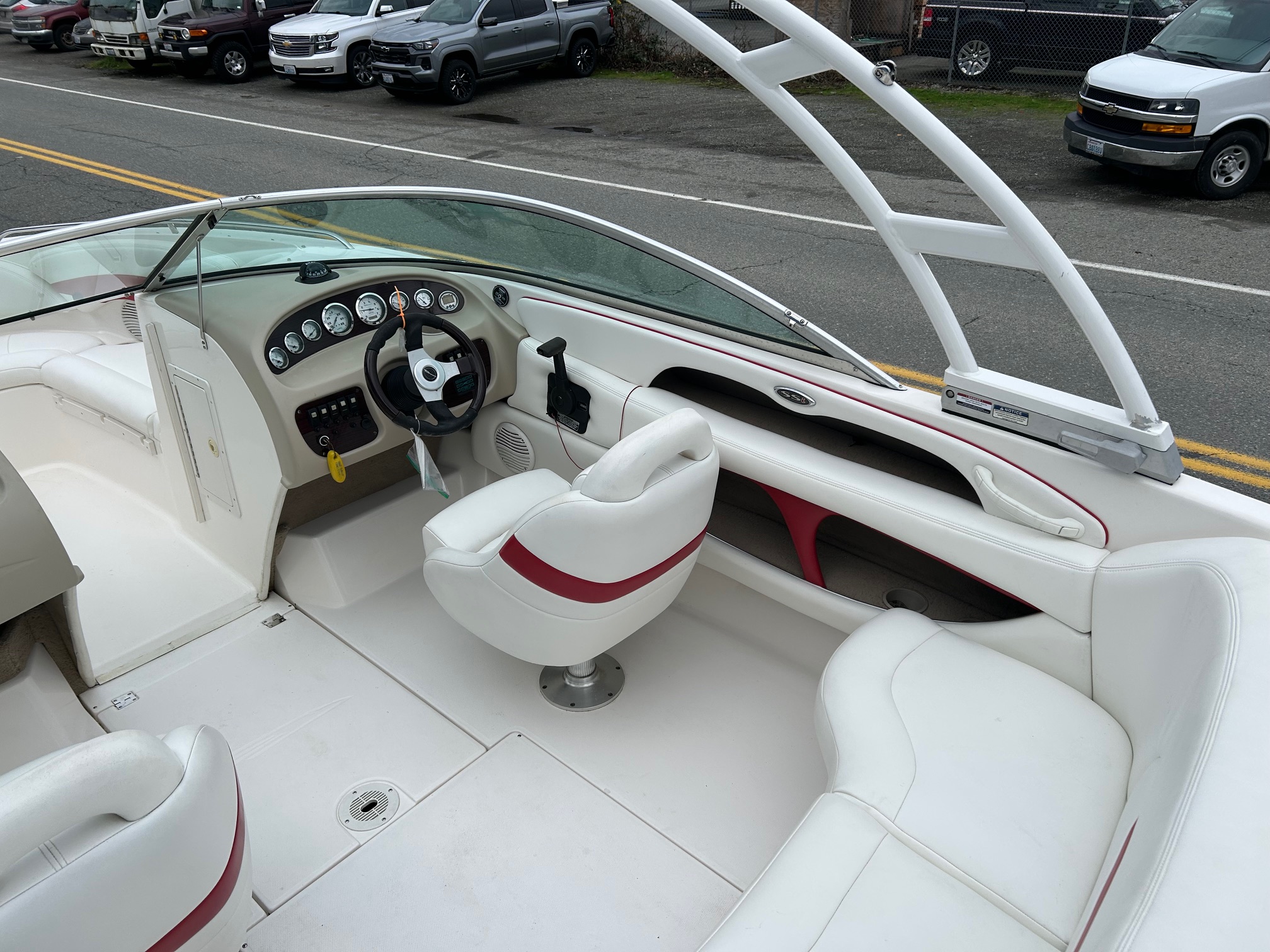Very clean 2000 Chaparral 216 SSi Sport with only 531 hours on the Volvo 5.0L Gi. This model has excellent handling for its size. Has recently had brand new vinyl upholstery and new high-quality snap-on bow and cockpit cover installed. Boat has tons of storage, an in-floor ski locker, and a cooler in the bow and transom. Includes depth finder, anchor, chain, rope, wake tower, and tandem trailer. Excellent starter boat that has just been through our mechanical inspection and has great compression on all cylinders!