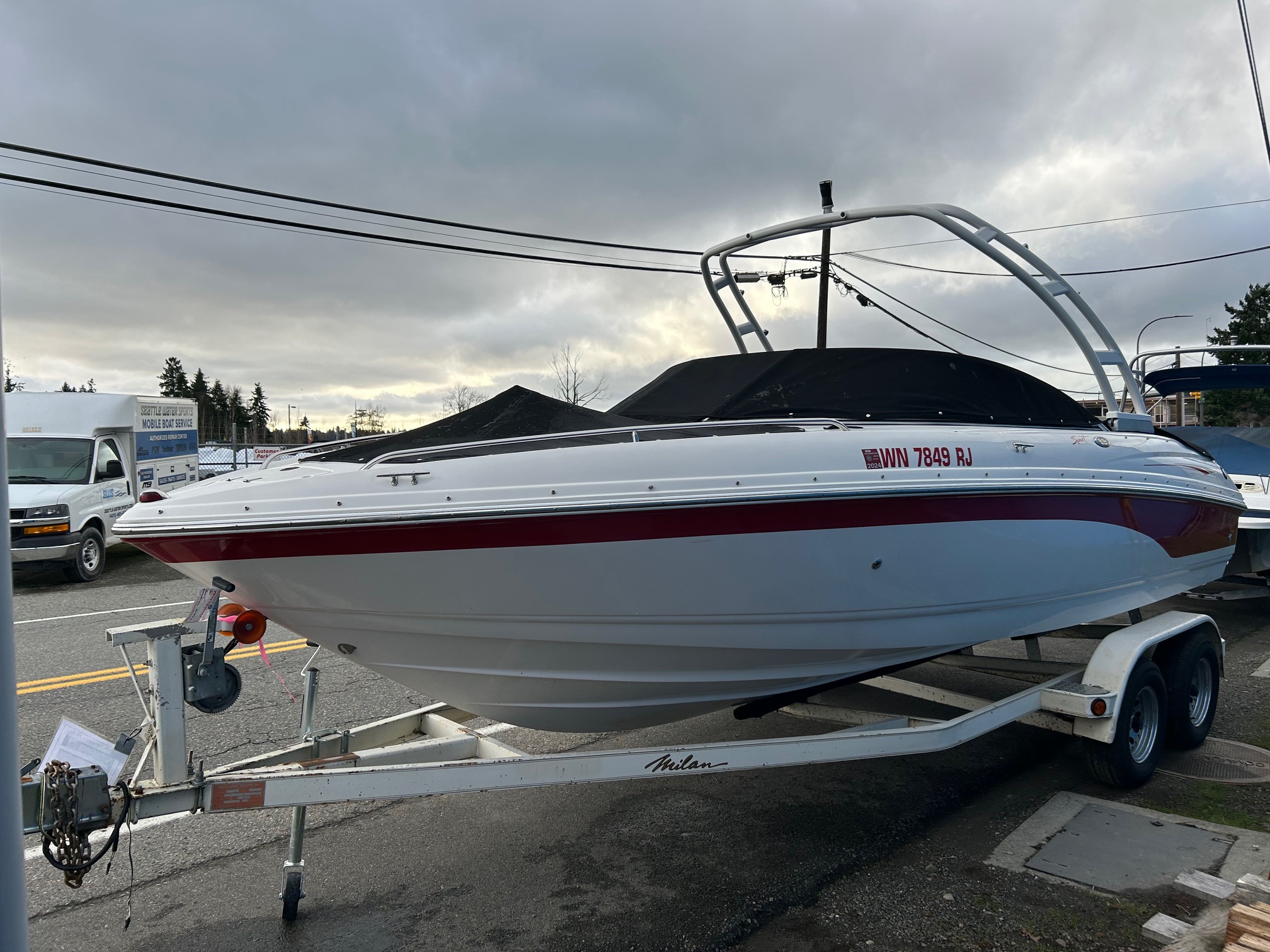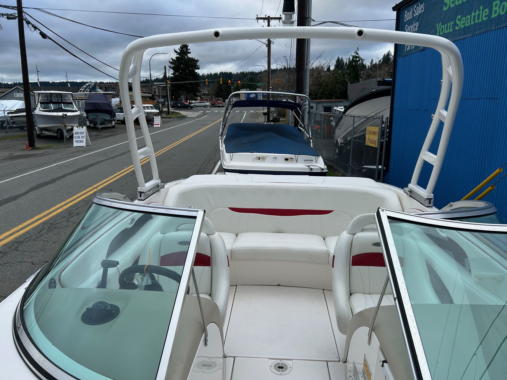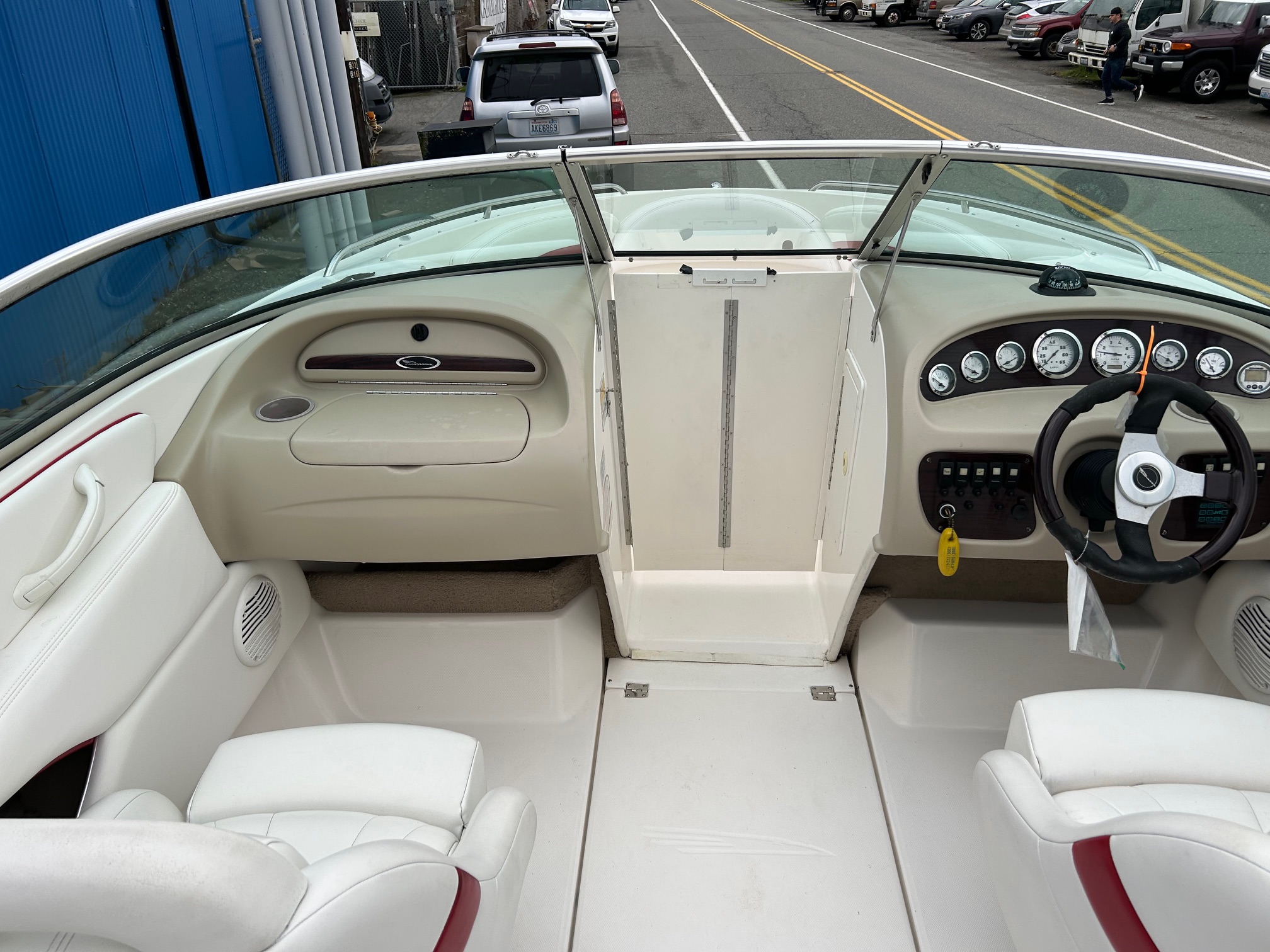 Very clean 2000 Chaparral 216 SSi Sport with only 531 hours on the Volvo 5.0L Gi. This model has excellent handling for its size. Has recently had brand new vinyl upholstery and new high-quality snap-on bow and cockpit cover installed. Boat has tons of storage, an in-floor ski locker, and a cooler in the bow and transom. Includes depth finder, anchor, chain, rope, wake tower, and tandem trailer. Excellent starter boat that has just been through our mechanical inspection and has great compression on all cylinders!