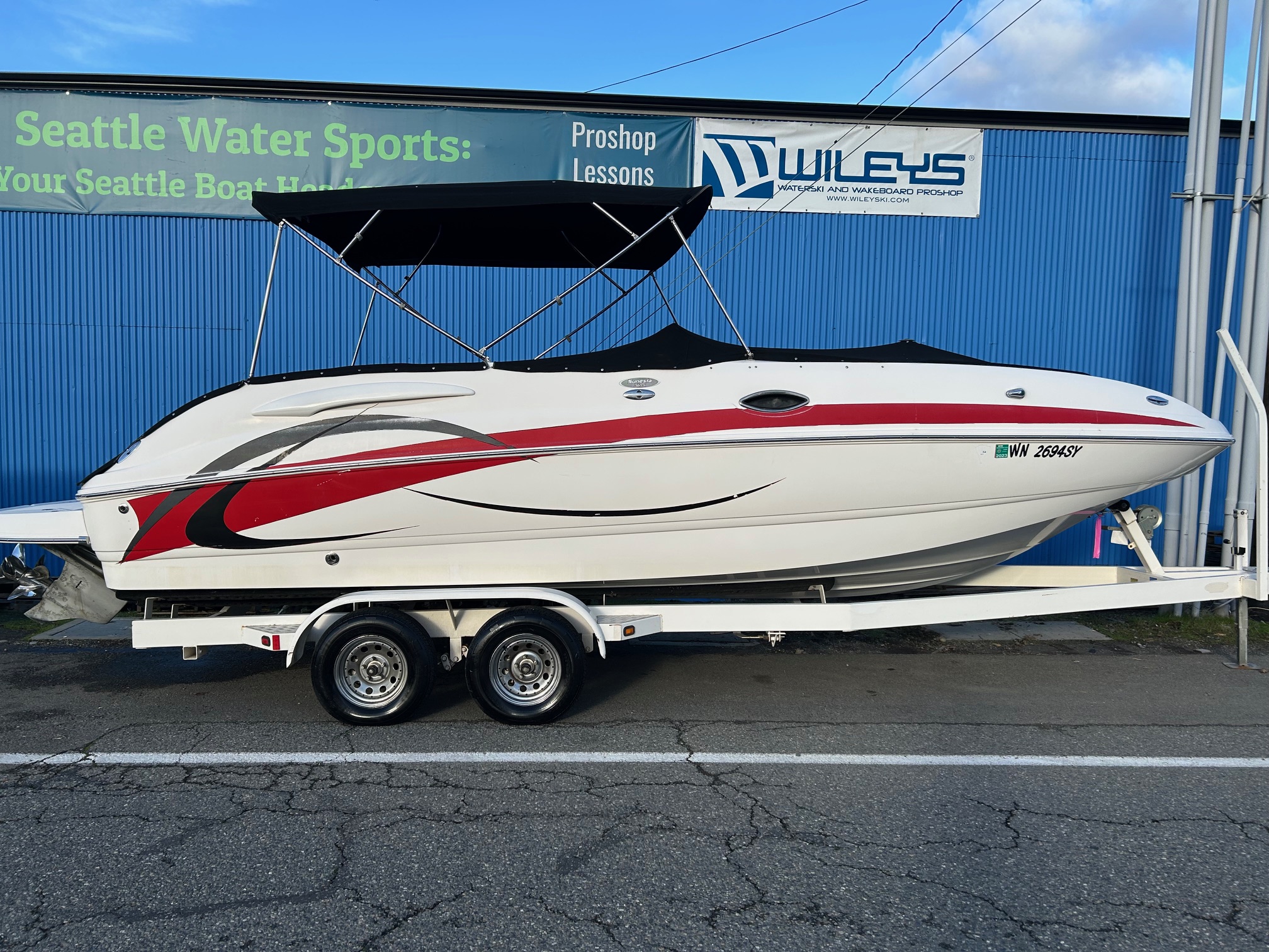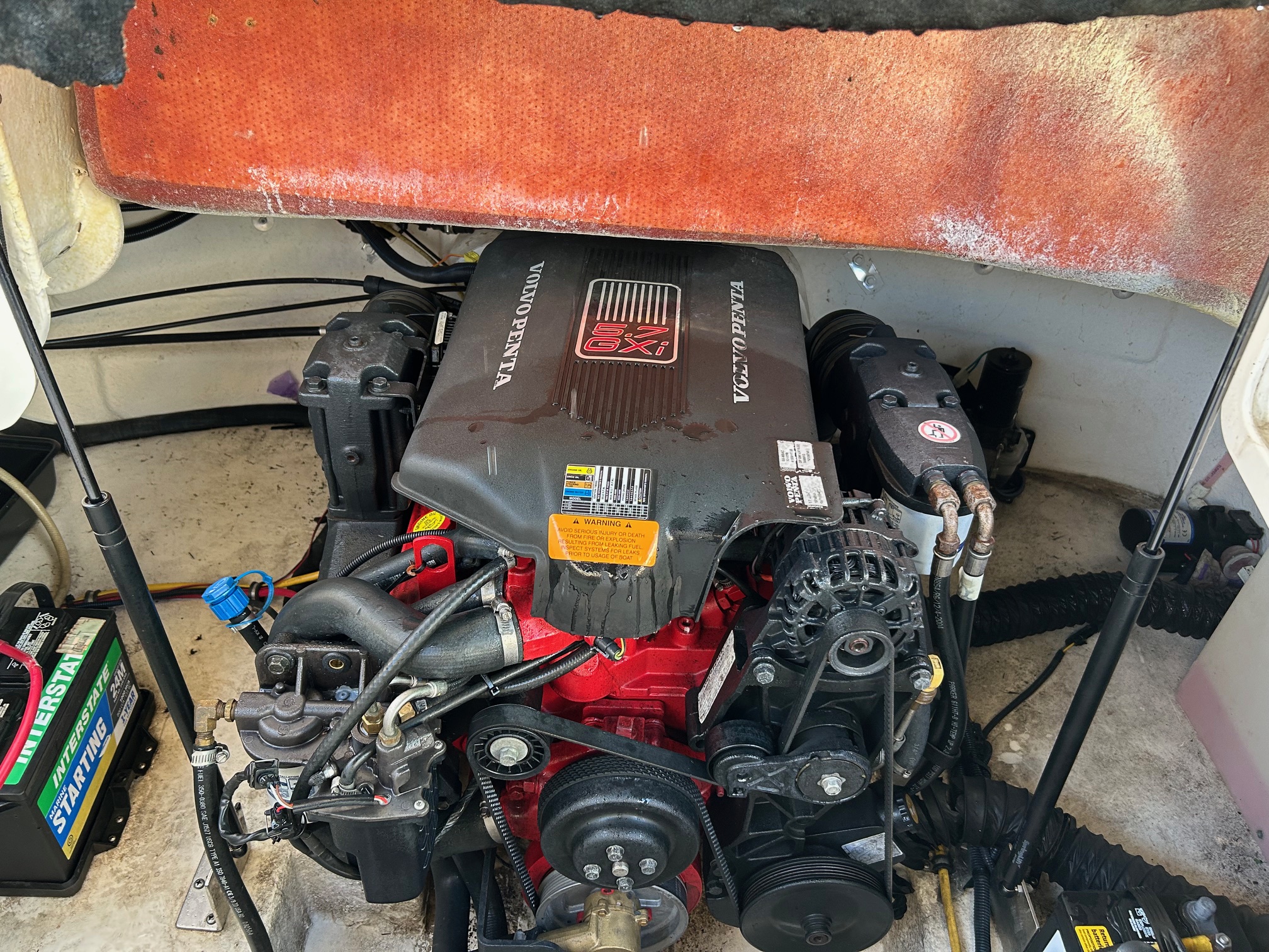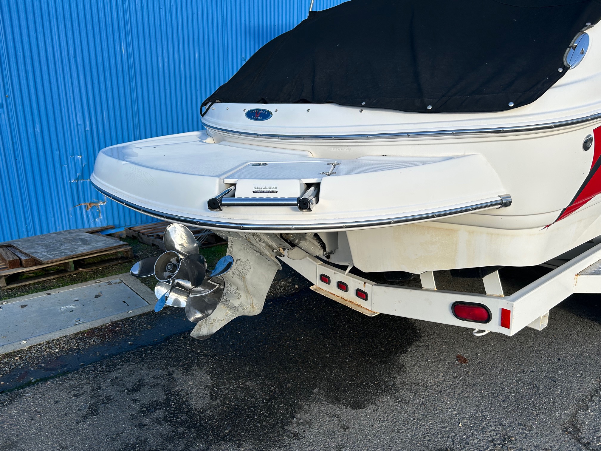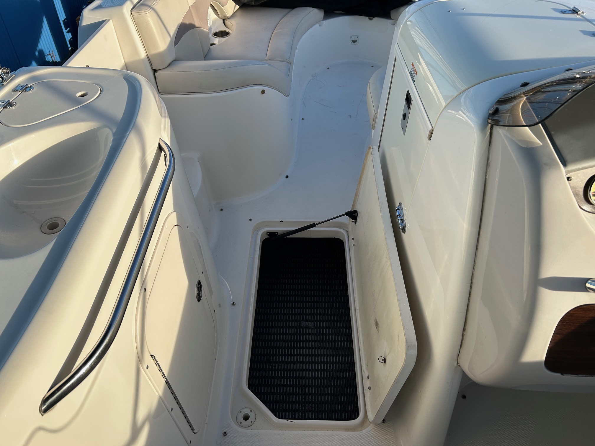 2005 Chaparral Sunesta with only 296 hours on the Volvo 5.7L GXI motor with duo prop. Very large swim platform, spacious seating with a comfortable bow pad, and an enclosed head space for extra storage or add a porta potti. Notable features include a double-wide helm seat with flip up bolster, a wet bar, ample storage, a walk-through transom, and both bow and stern swim ladders for easy water access. Includes a transom shower, storage transom trunk, docking lights, dual batteries with switch, and bimini top. New fuel pump installed and outdrive just serviced. Boat is in great mechanical shape and makes an awesome party barge.