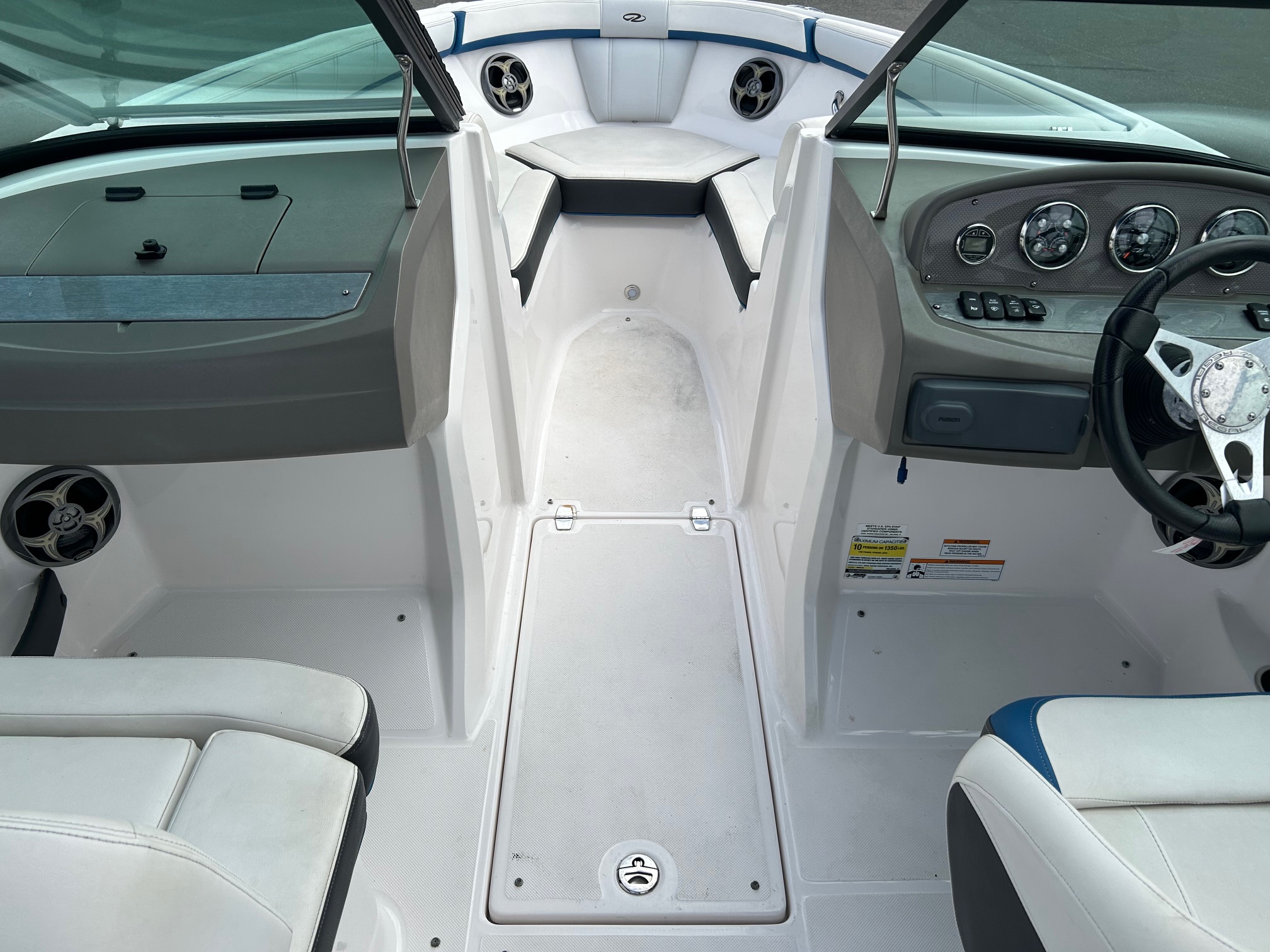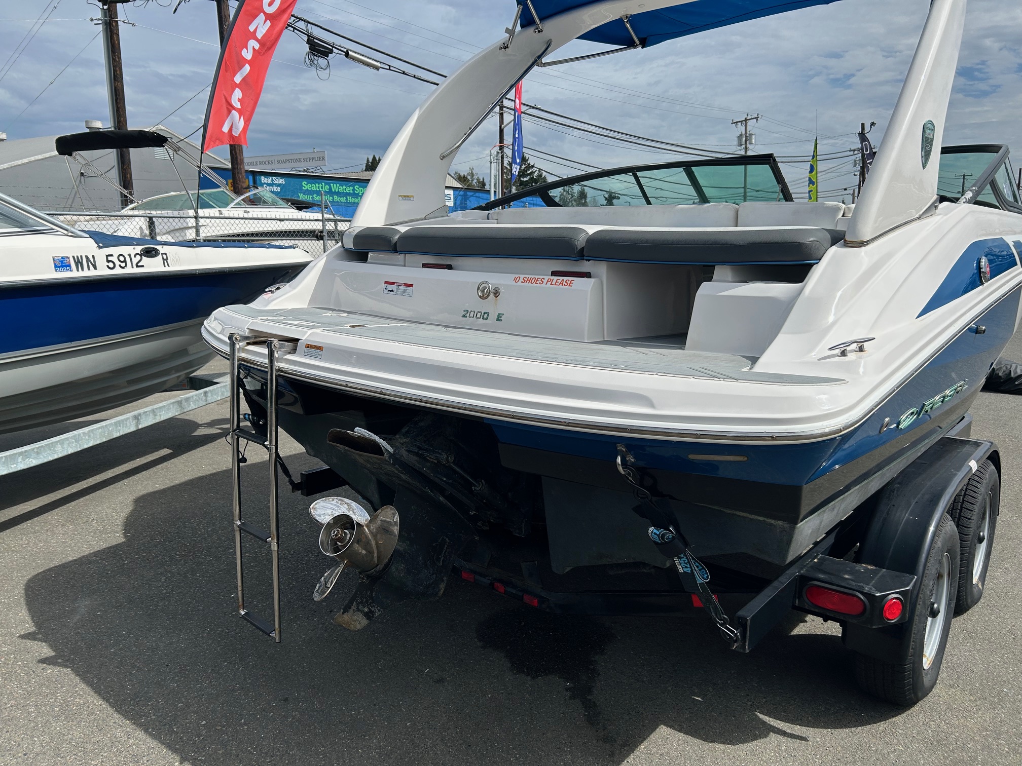 The 2015 Regal 2000 ESX is a 20-foot, 3-inch sporty bowrider designed for performance and social versatility, featuring a distinctive, aggressive styling package with unique upholstery, color-matched accents, and gelcoat graphics. It utilizes a stepped “FasTrac” hull design for improved speed and fuel efficiency, includes a Volvo Penta 4.3L V6 225hp.