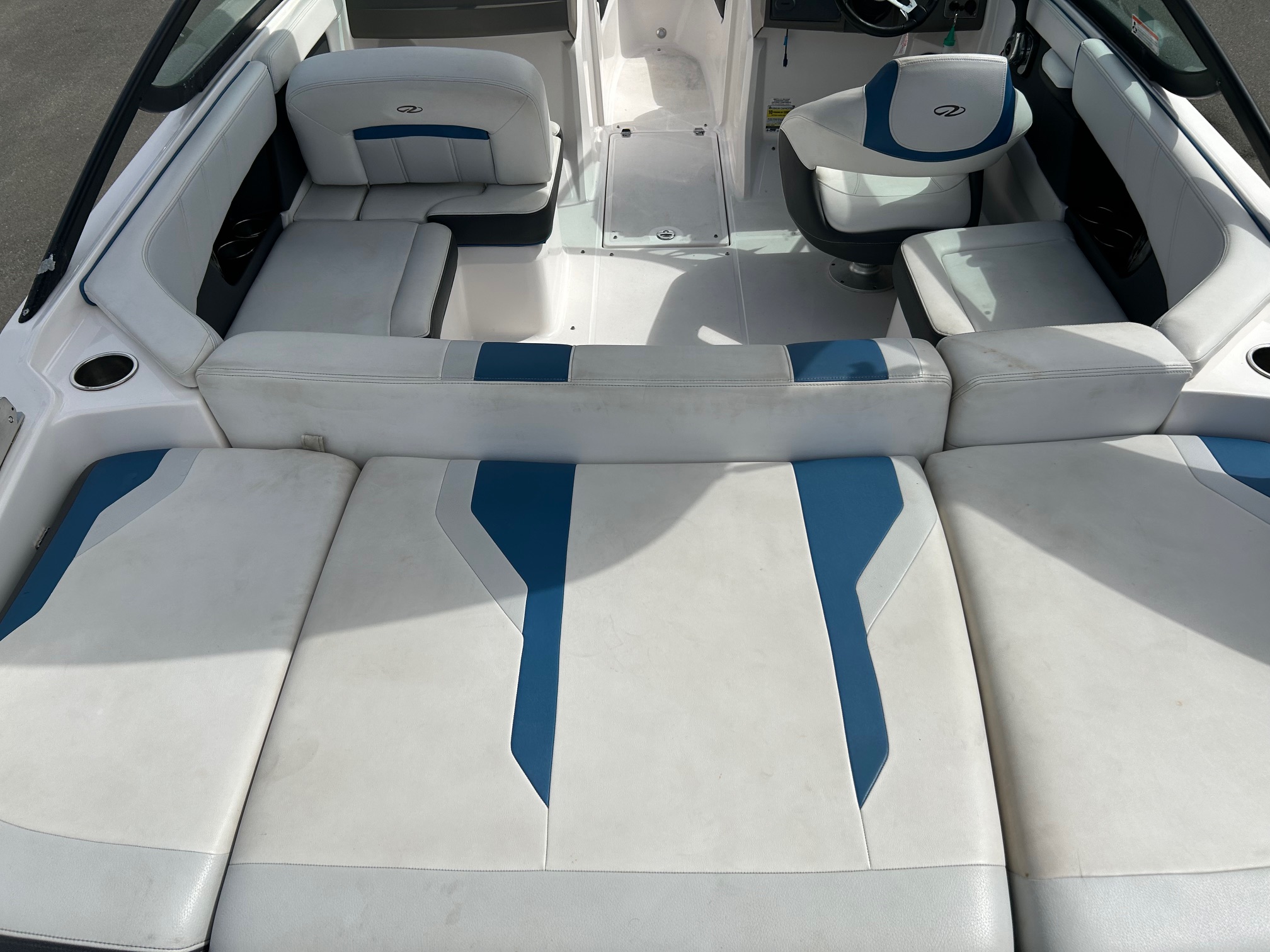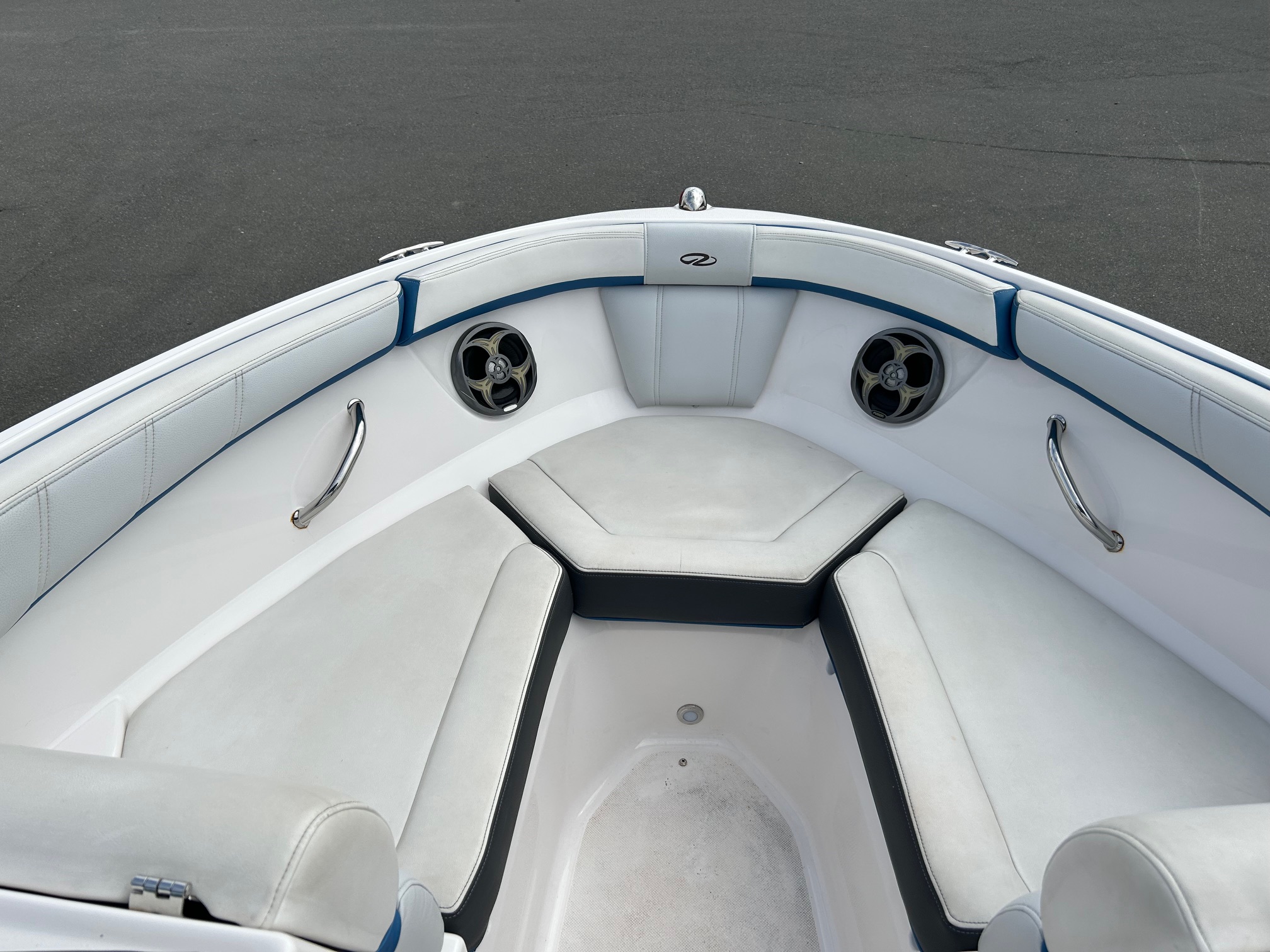 - Seating & Layout: Features wraparound cockpit seating, a swiveling helm seat, and a versatile observer seat that flips forward or aft.