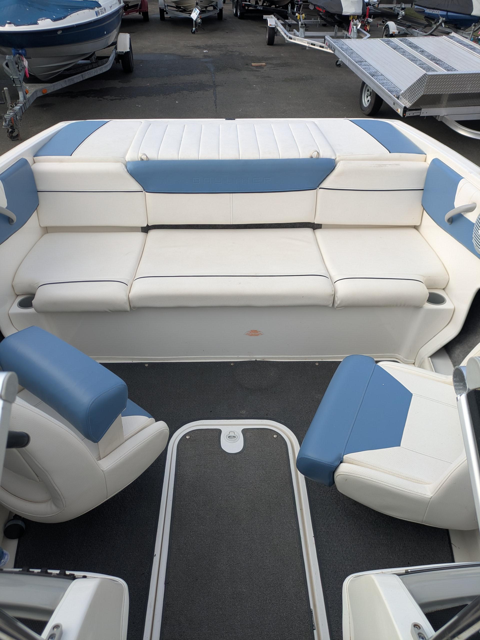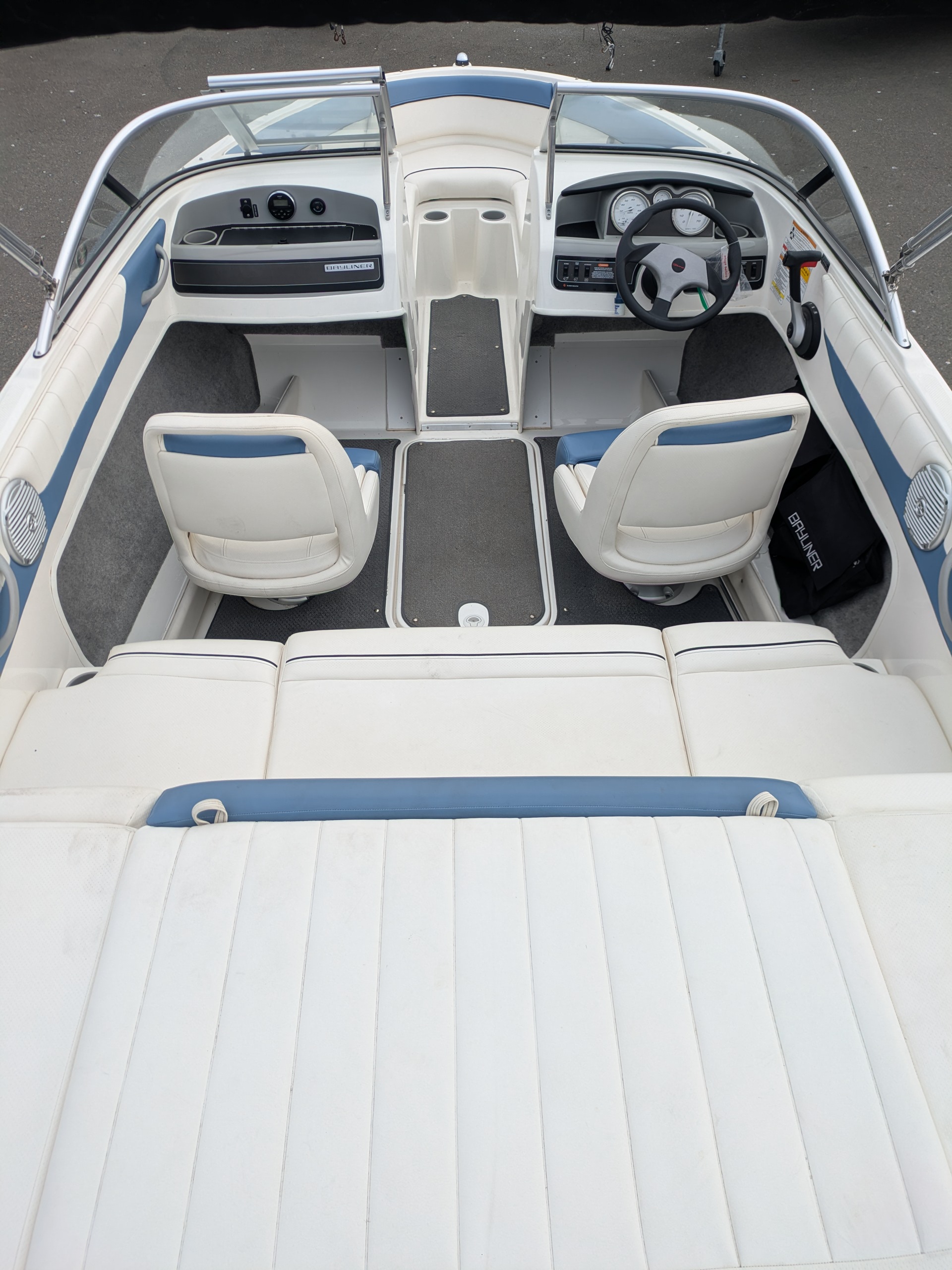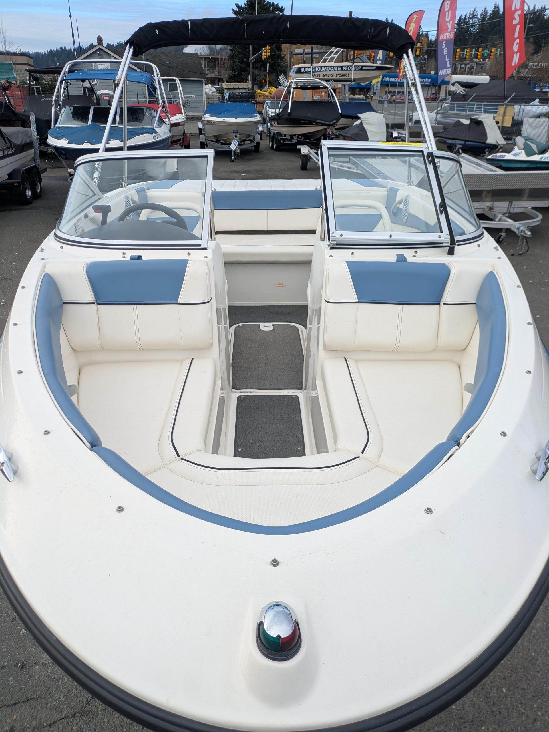 Yeah, the 185 Bowrider has won design awards, thrilled thousands and brought families closer together.  Great design, with storage for all your water toys, this pre-owned 185 is bent on pleasing everyone. Included also, is a NEW galvanized trailer with disc brakes that will provide some additional confidence while trailering to your favorite boating spot.