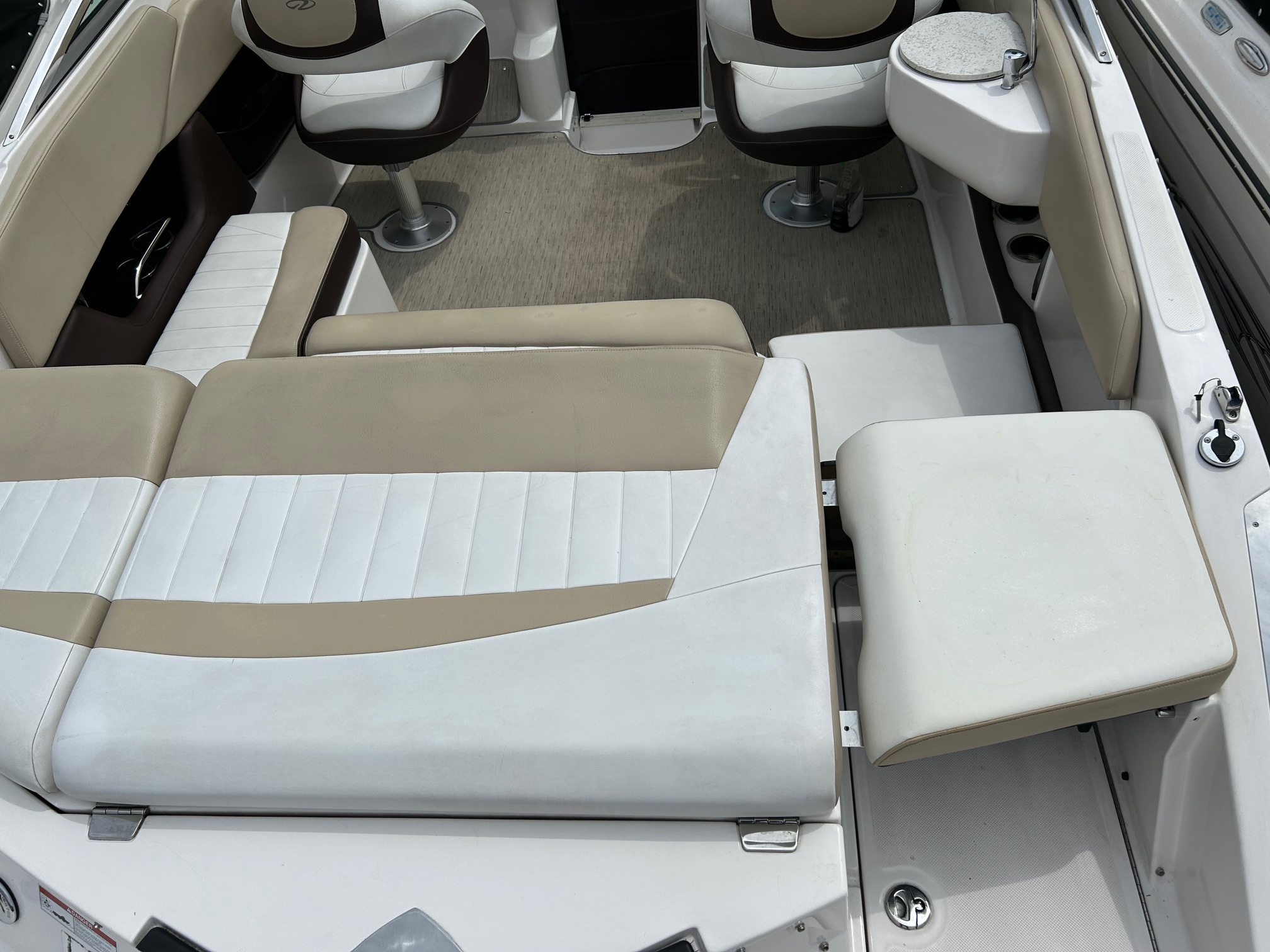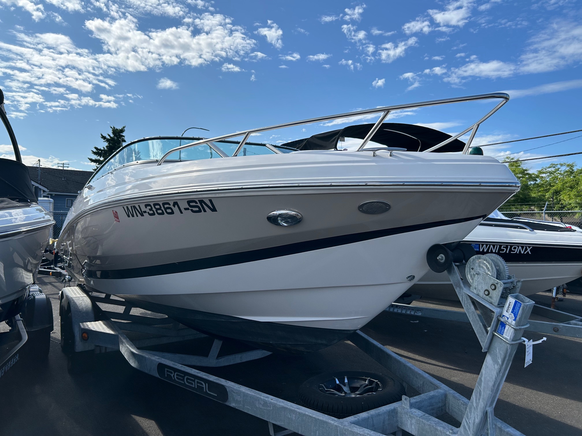 2016 Regal 2250 in great shape, only 65 hours on the Volvo 4.3L V6 280hp. Underwater lights at stern and a nice Bluetooth sound system. Engine info is displayed on screen. Fresh water shower at transom and sink in cockpit with corian cover cutting board. Porta pottie never used. Storage cover and moorage cover included. Fresh water use only but has bottom paint if you’re wanting to do saltwater. Fast boat with Regal Fas Trac hull design, handles really nice in rough conditions. Comfortable cabin berth for overnighters, seats transition into bed. Transom walkthrough door with fold out cushions to make sun pad. Walkway can be filled in with additional seat. Pop up ski tow at transom, excellent running boat with no issues and great compression on all cylinders. Galvanized custom tandem trailer included.