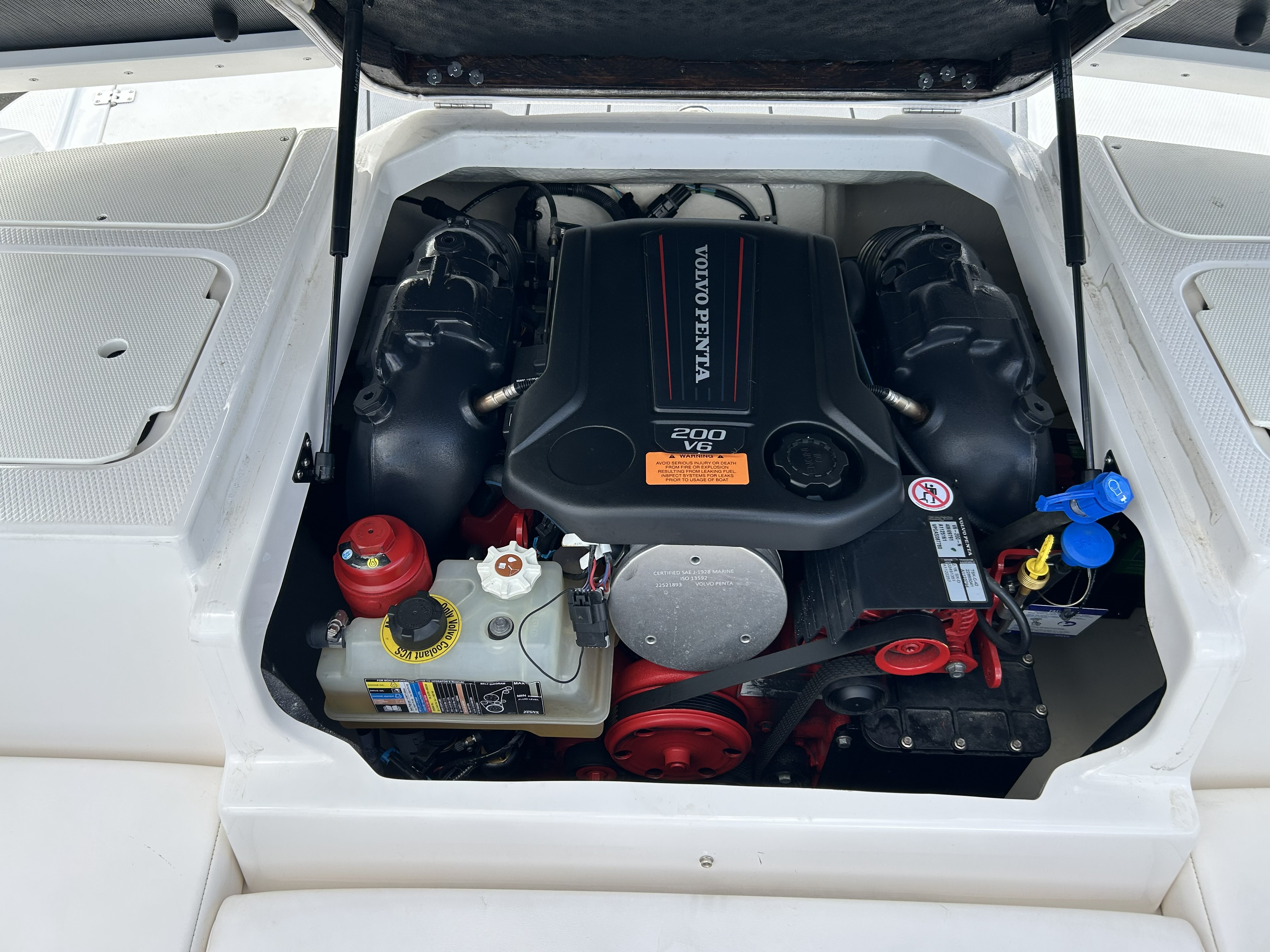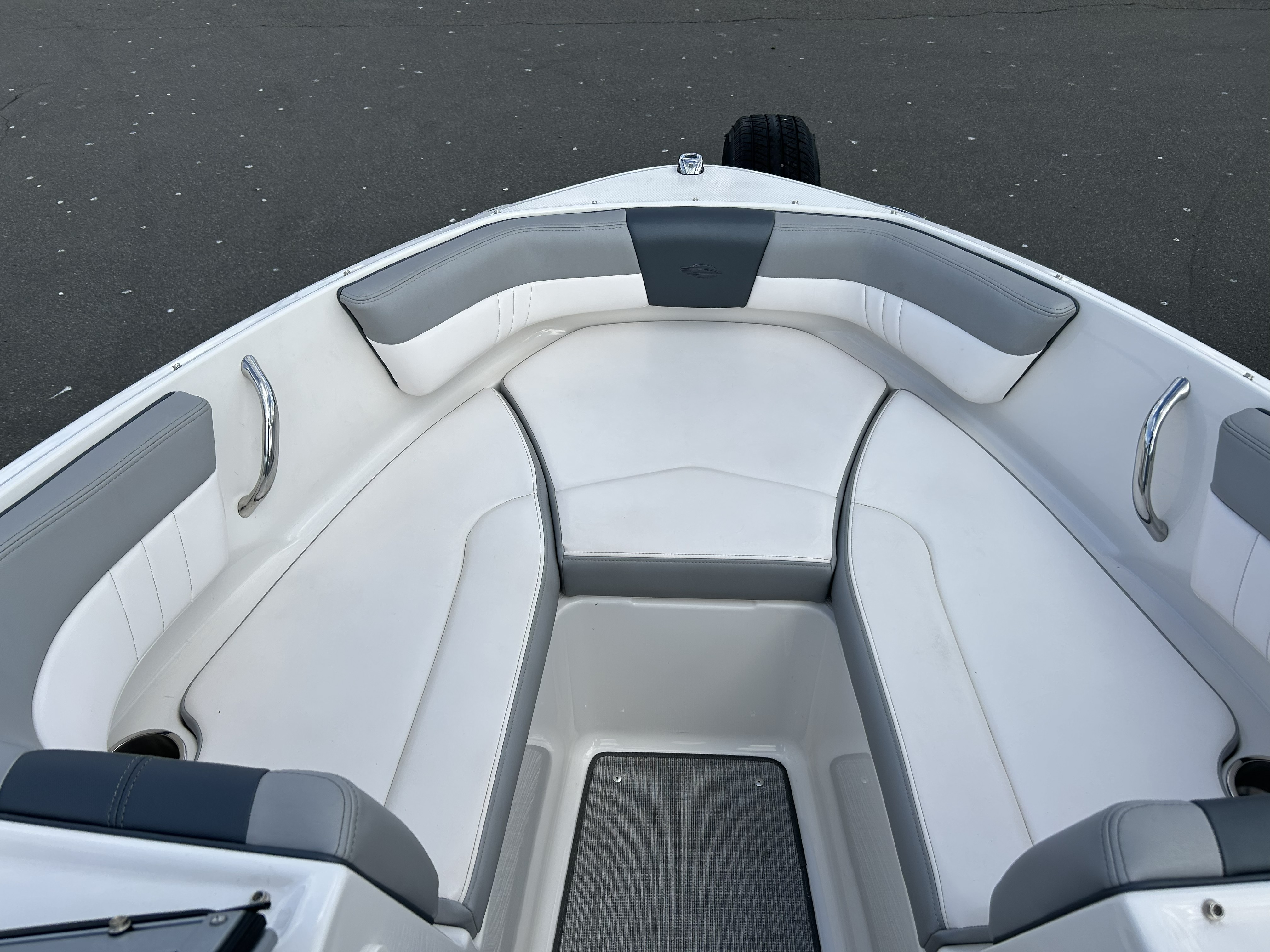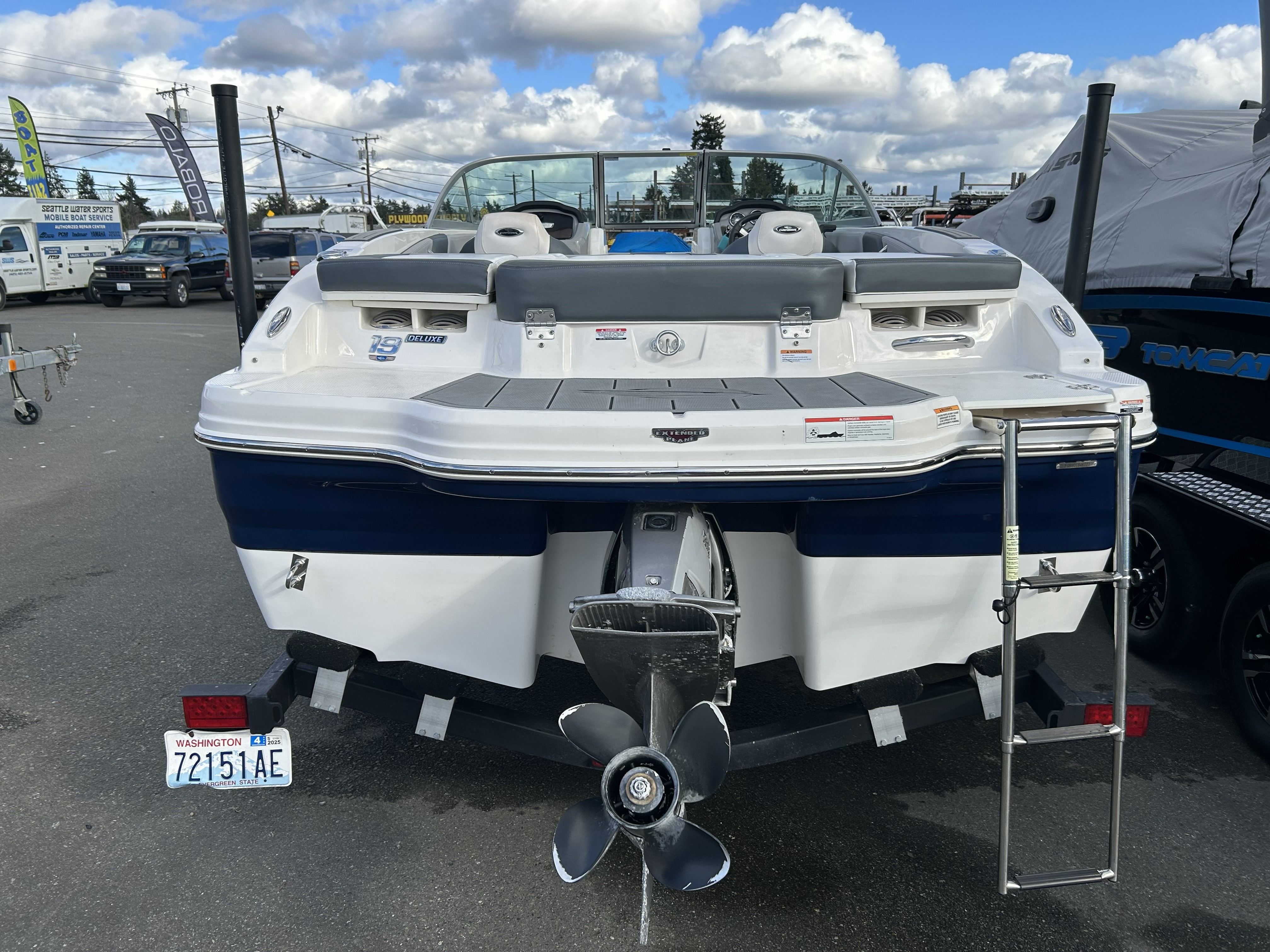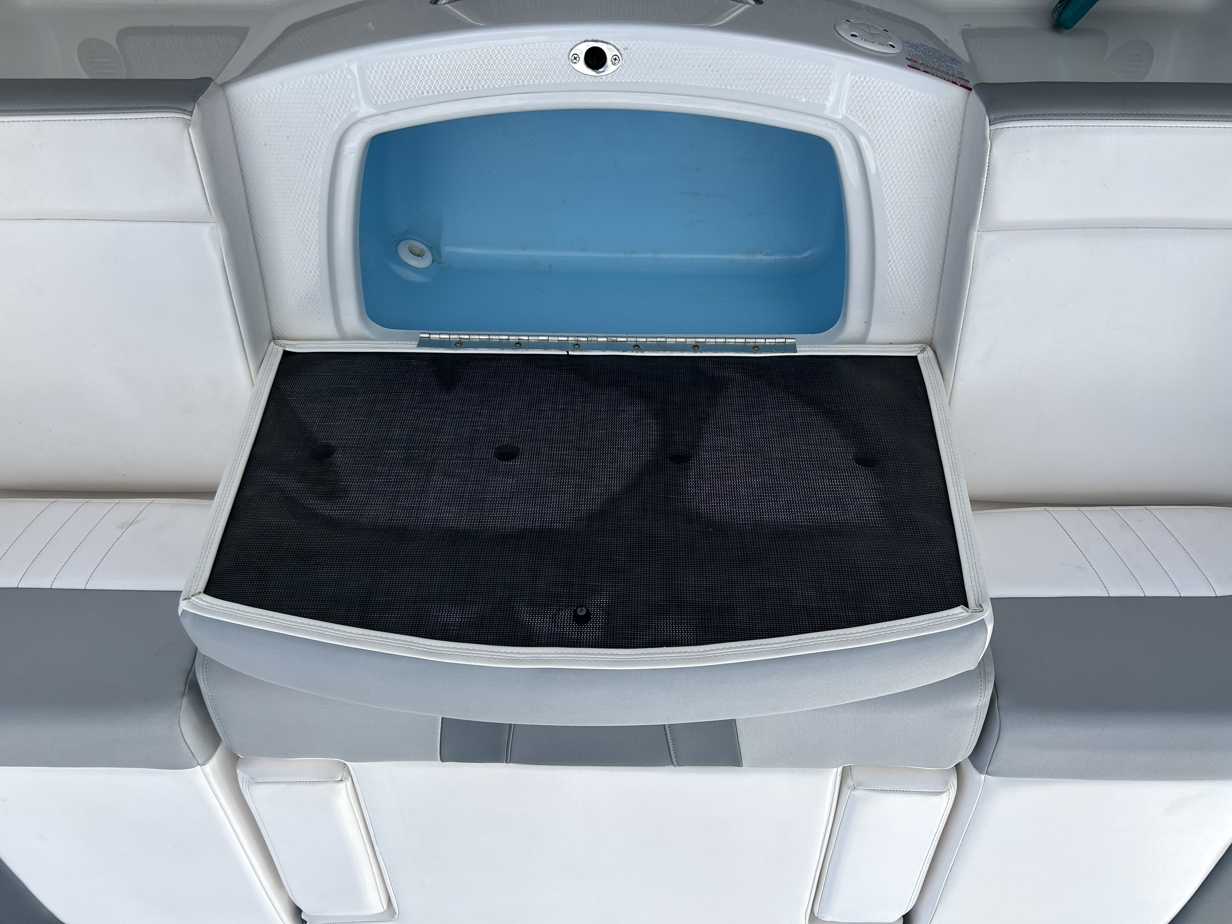 This is a very nice, low-hour pre-owned 19ssi! Stainless steel hardware, non-skid flooring, and battery on-off switch go one-up on rivals. Storage is abundant under the seats, in the helm, in a wakeboard sized floor locker and there’s also a cooler under the back seat. A high-quality sound system is enhanced with both USB and MP3 jacks. Key options included are snap-in beach weave flooring, a Seadek swim platform mat, blue wide band hull color with grey interior, bow & cockpit cover, digital depth gauge, pull-up cleats, custom trailer w/ side guides and spare tire kit.