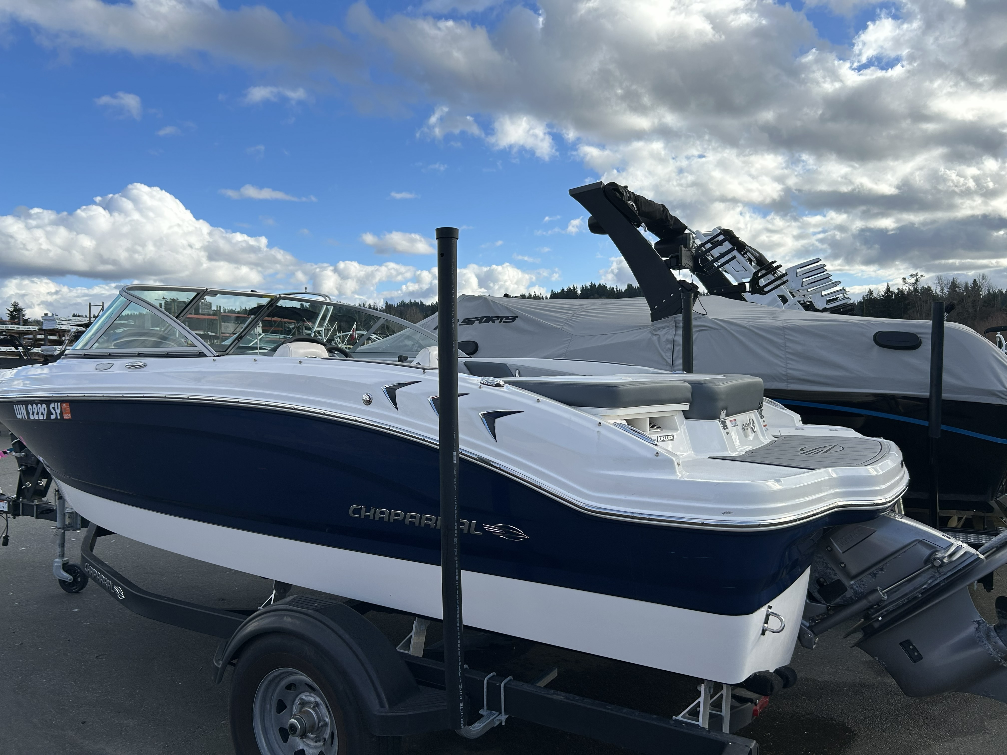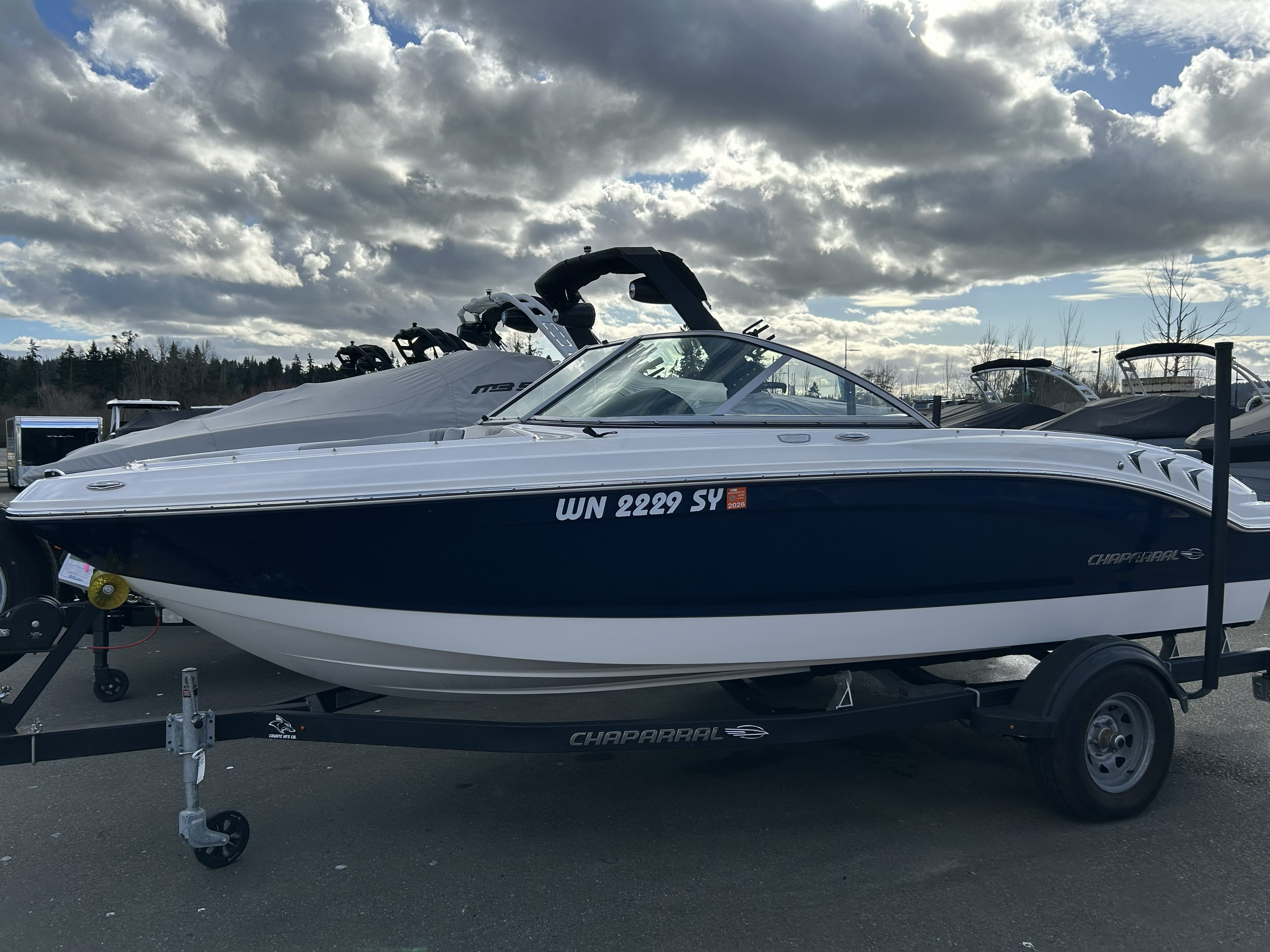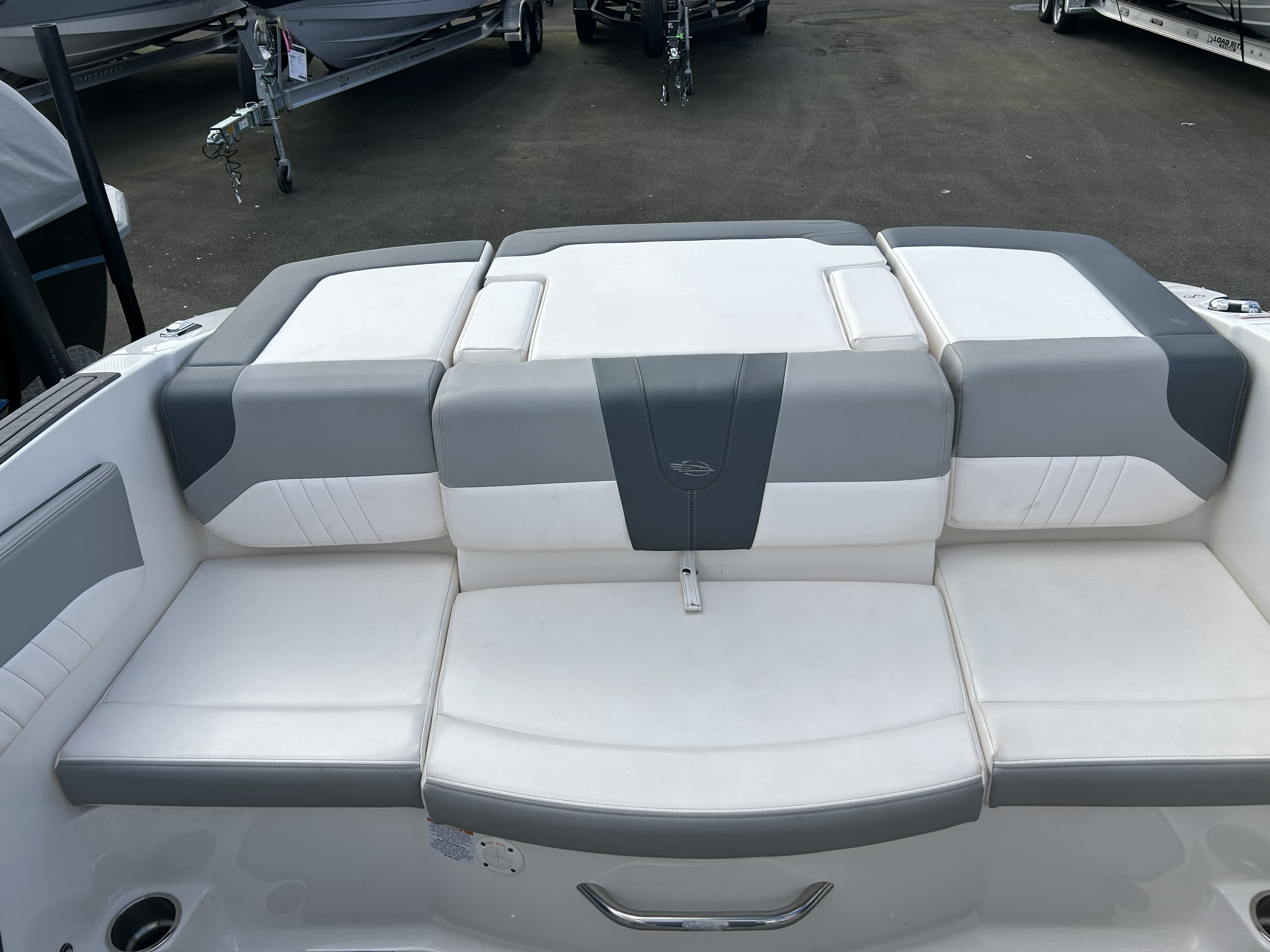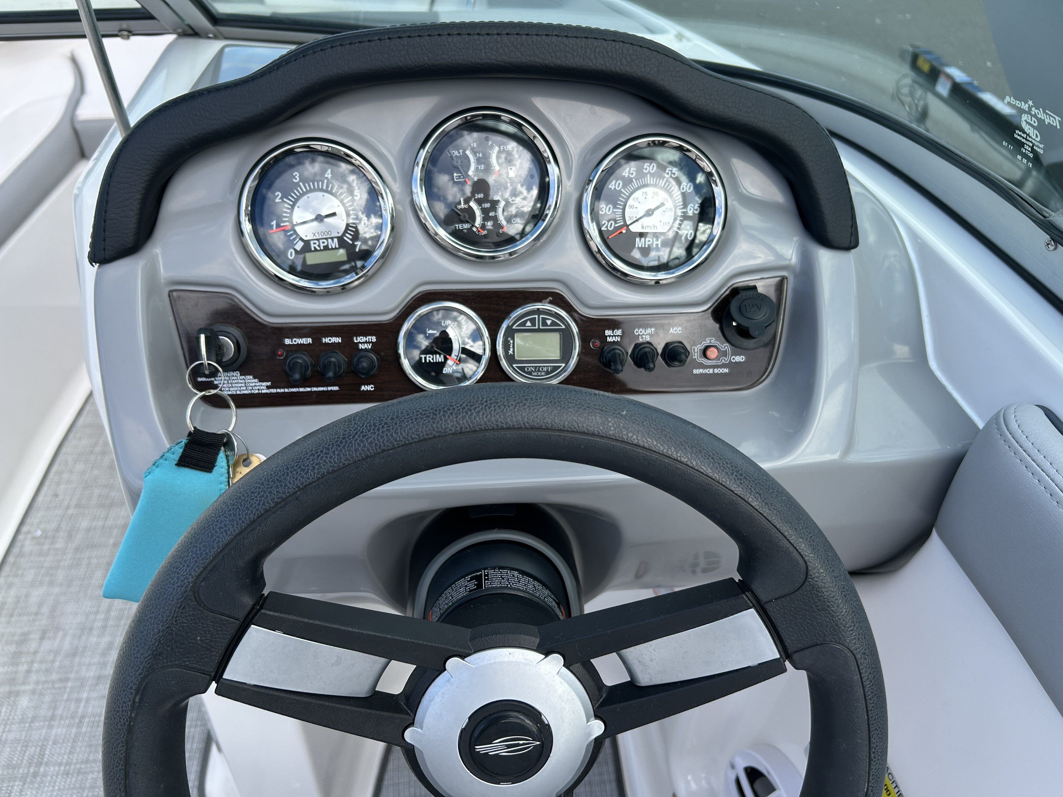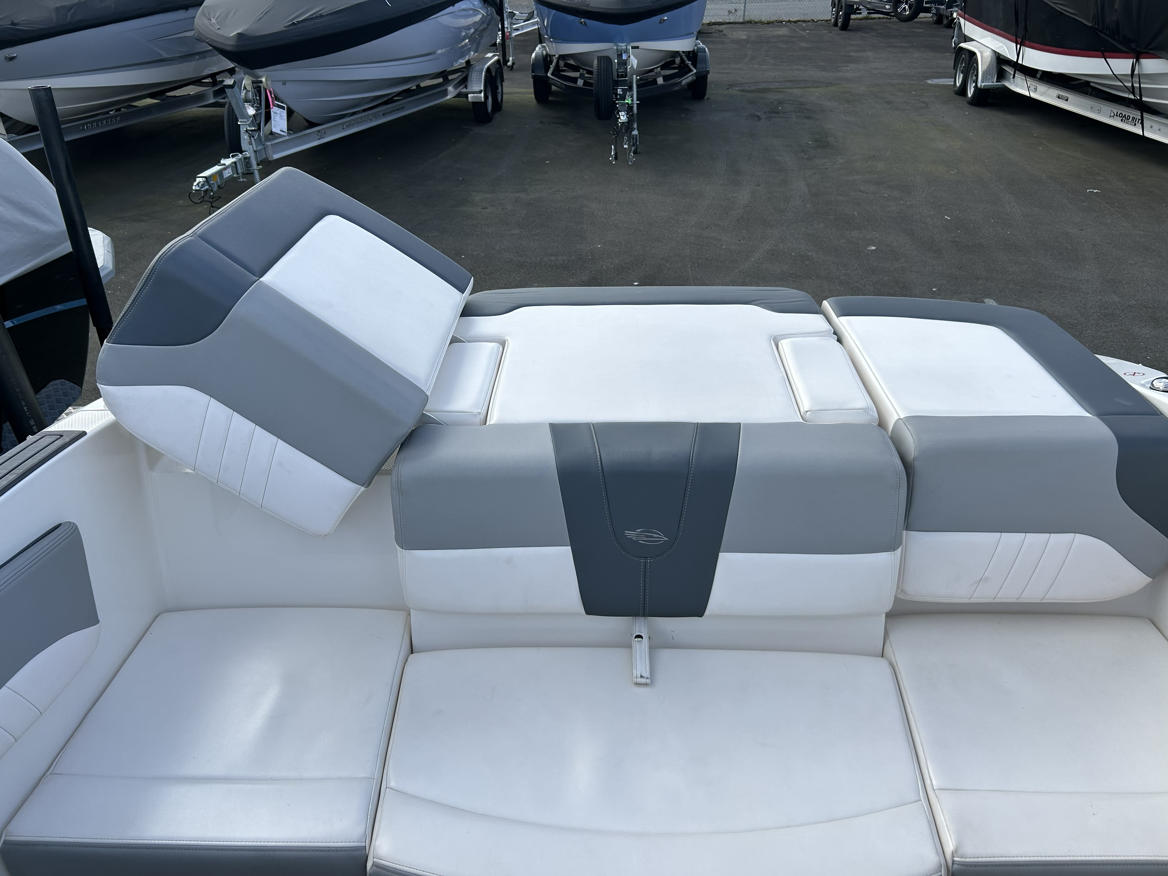 This is a very nice, low-hour pre-owned 19ssi! Stainless steel hardware, non-skid flooring, and battery on-off switch go one-up on rivals. Storage is abundant under the seats, in the helm, in a wakeboard sized floor locker and there’s also a cooler under the back seat. A high-quality sound system is enhanced with both USB and MP3 jacks. Key options included are snap-in beach weave flooring, a Seadek swim platform mat, blue wide band hull color with grey interior, bow & cockpit cover, digital depth gauge, pull-up cleats, custom trailer w/ side guides and spare tire kit.