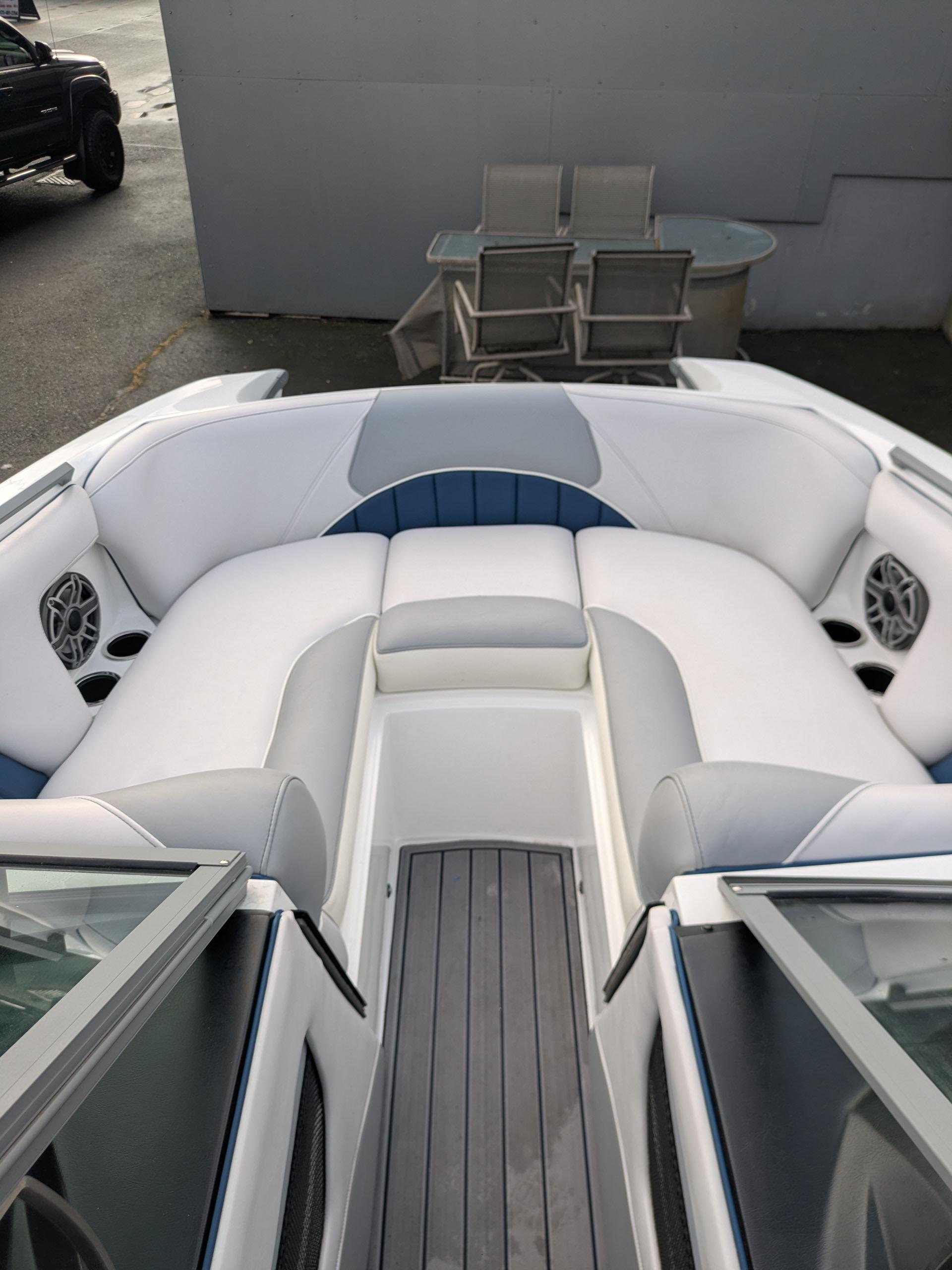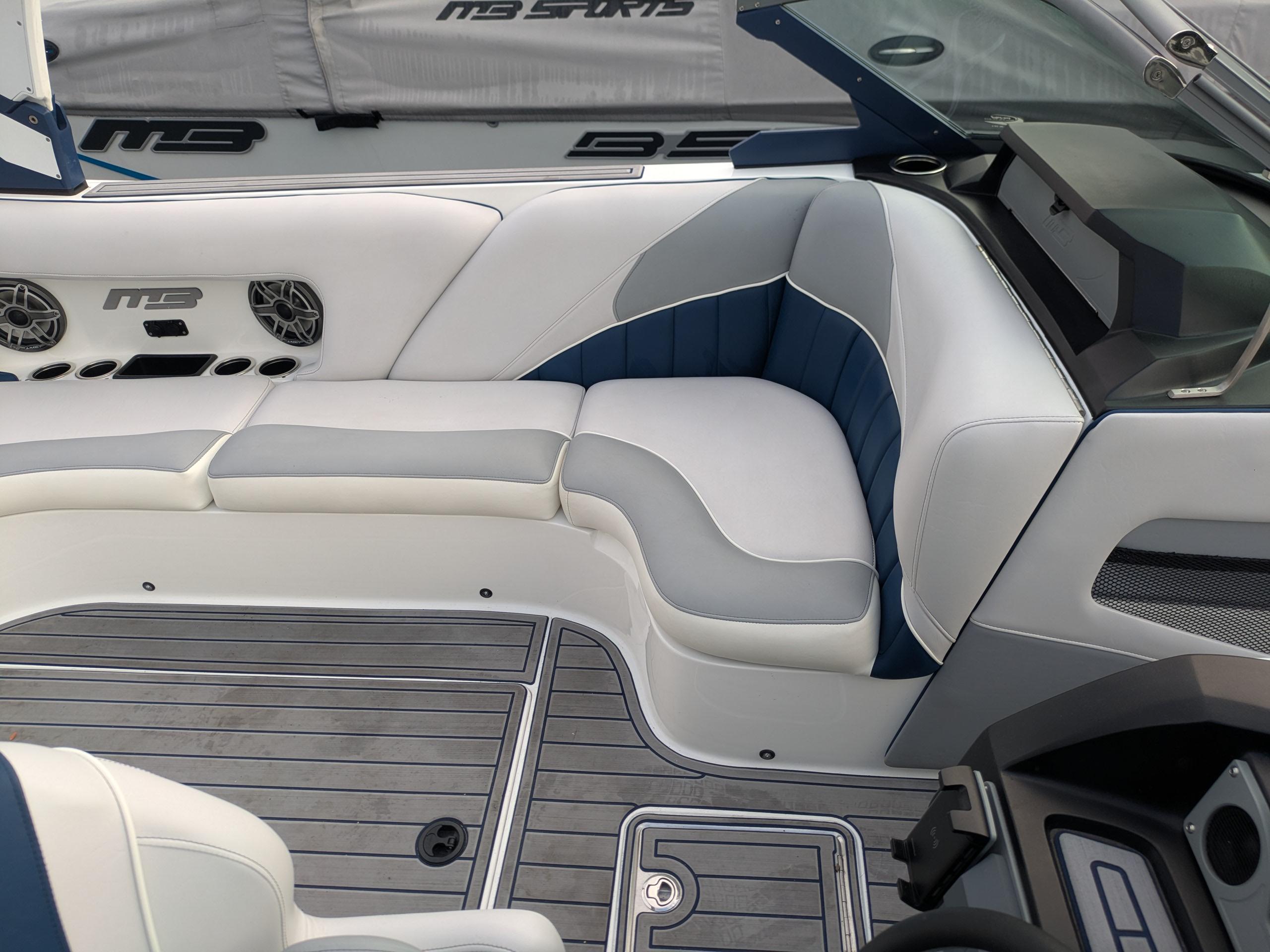 The MB Sports Tomcat Series broke the mold when we developed an alternative bow and created an aggressive, modern look that is the pickle fork design. MB maintained traditional characteristics from our racing heritage sustaining performance without compromising the luxury style playpen. The eye-catching lines of the Tomcat series makes a statement on the water no matter which model you choose. Now with more power, more ballast and Awesome SURF WAKE, the F22 is considered one of the best values in the Tow Boat Market!