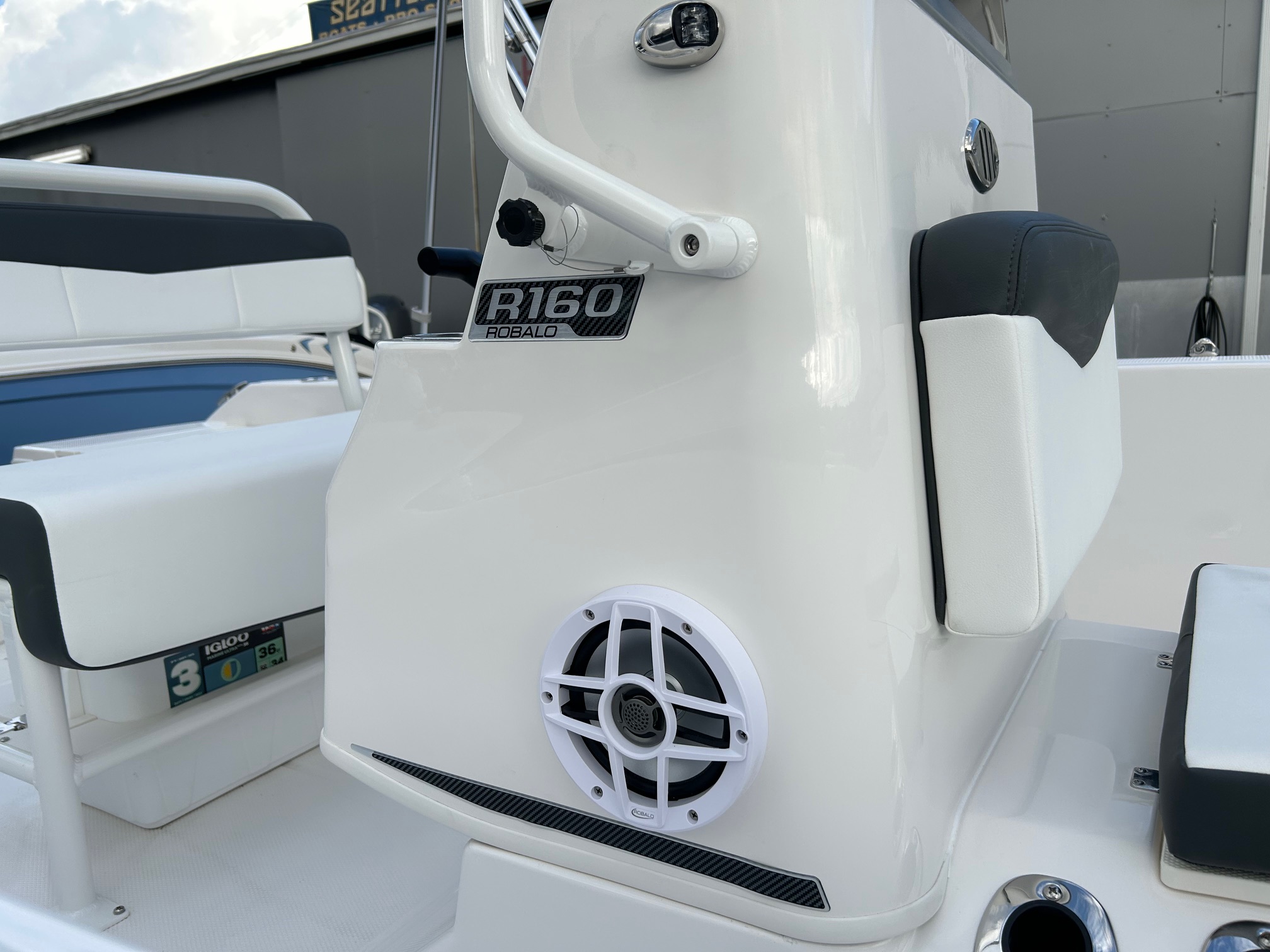 The all-new R160 makes every on-water adventure more fun in a size that’s easy to trailer and store. But don’t think that it isn’t designed with performance in-The all-new R160 makes every on-water adventure more fun in a size that’s easy to trailer and store. But don’t think that it isn’t designed with performance in-mind. Featuring the same on-water capability of its larger Robalo family, the R160 offers a host of amenities including a full-sized windscreen, convertible rear seating and an integrated fuel tank. The R160 is perfect for those who want an easy size to manage without any sacrifices. mind. Featuring the same on-water capability of its larger Robalo family, the R160 offers a host of amenities including a full-sized windscreen, convertible rear seating and an integrated fuel tank. The R160 is perfect for those who want an easy size to manage without any sacrifices.